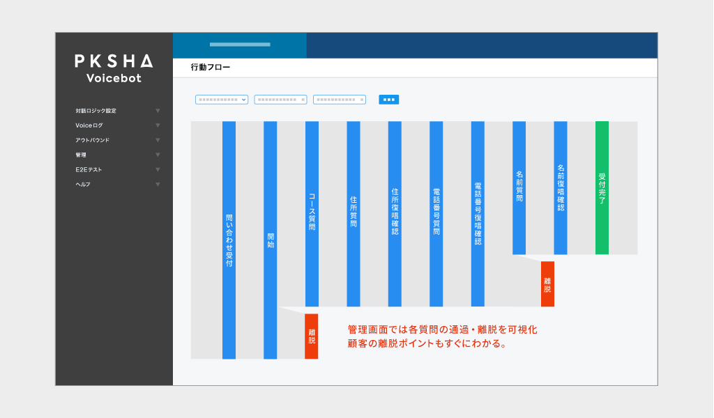梅田様:管理画面はとても分かりやすいと感じています。例えば対話フローの分析が効率的に行うことができます。どの質問で、どれだけの人が離脱したのか、明確に把握できることでスムーズに改善につなげることができます。